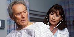 This, for this writer at least, was the first indication that maybe Eastwood shouldn’t direct every good script that slides across his desk. “Blood Work” was adapted from a crackerjack Michael Connelly novel by the great Brian Helgeland (who would become a frequent Eastwood collaborator) and is centered around a hum-dinger of a crime movie conceit. Eastwood plays a FBI Agent whose life is saved by a heart transplant. The person whose heart Eastwood received was murdered, and the murder victim’s sister (played by solid character actress Wanda de Jesus) implores Eastwood to solve the crime. It’s a thriller with all of these built-in psychological and spiritual questions, plus a really cool plot. What could go wrong? Well, Eastwood’s sluggish direction, for one; plus the fact that Eastwood is just not a great director of suspense set pieces (some may disagree, but the thriller aspects of “Mystic River” were probably its soggiest; ditto “Absolute Power”). Taking your time and building things appropriately makes sense, but when you could feel that the audience was a few steps ahead of the director (and the characters on screen), something was wrong. It was one of the first times that you felt Eastwood’s age as a director, and it felt OLD. [C+]